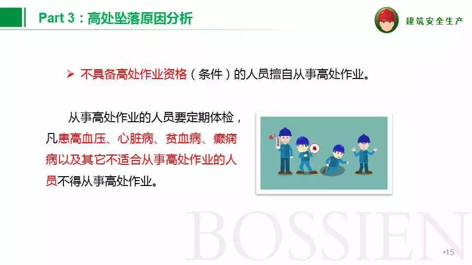 2、高處作業(yè)人員必須做好入職前體檢,對(duì)患有心臟病、高血壓、癲癇等禁忌癥者嚴(yán)禁從事高處作業(yè)。