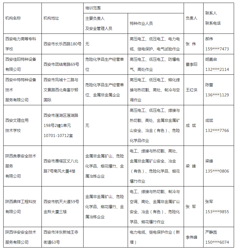 陜西省安全生產(chǎn)培訓(xùn)機(jī)構(gòu)基本信息(7家)